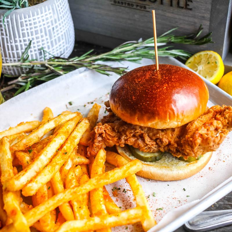 Grilled or fried chicken breast, pickles, B&B sauce, lettuce, tomato, onion